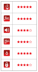 • Επιπλέον, φέρει πιστοποίηση για θερμομόνωση με συντελεστή Θερμικής Αγωγιμότητας των προφίλ: Uf από 4 (W/m²K) σύμφωνα με το γερμανικό κοινοποιημένο εργαστήριο Ift Rosenheim